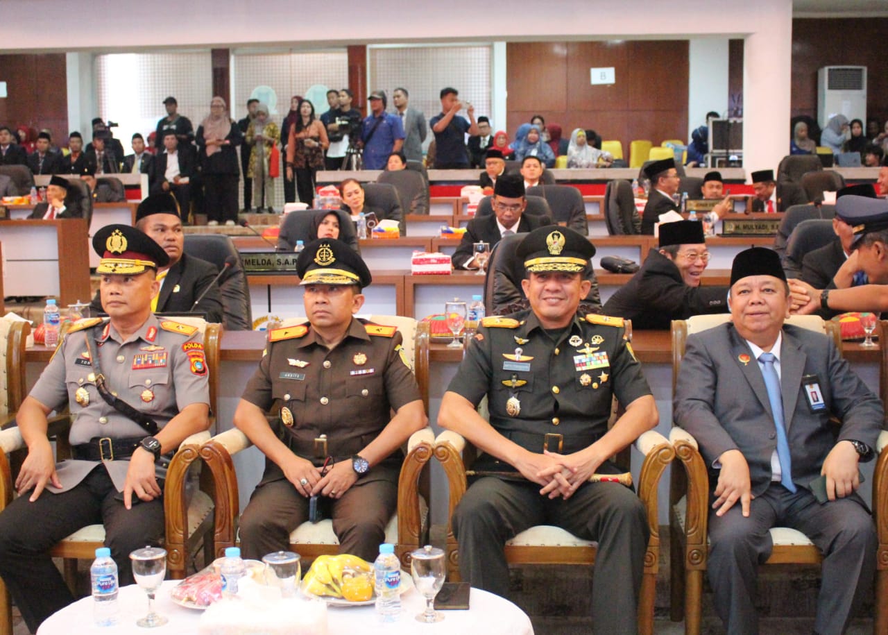 PANGKALPINANG- Danrem 045/Gaya Brigjen TNI Safta Feryansyah S.E.,S.I.P.,M.Han menghadiri acara Rapat Paripurna DPRD Provinsi Bangka Belitung bertempat di ruang rapat Paripurna DPRD Provinsi Kepulauan Bangka Belitung, Kelurahan Air Itam Pangkalpinang, Jumat (15/08/2025).