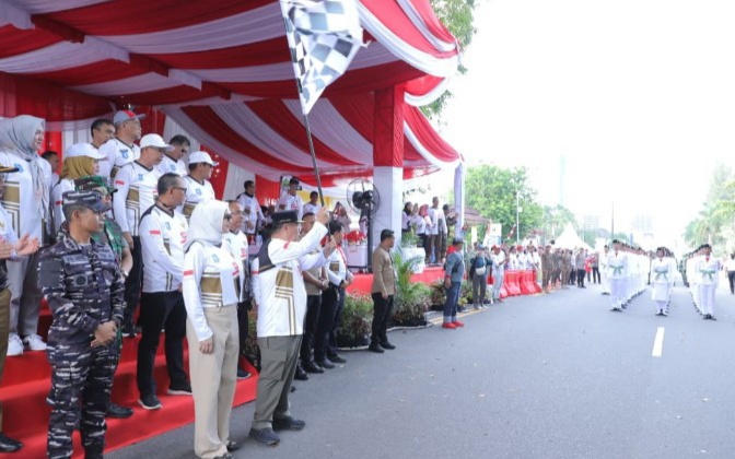 BeritaSeindo.Com – Secara resmi, Gubernur Kepulauan Bangka Belitung (Babel) Hidayat Arsani didampingi Ketua TP PKK Babel, Noni Hidayat Arsani melepas pawai karnaval baris berbaris dengan mengibarkan bendera start yang di mulai di Titik Nol Kilometer, Senin, (1/9/2025)